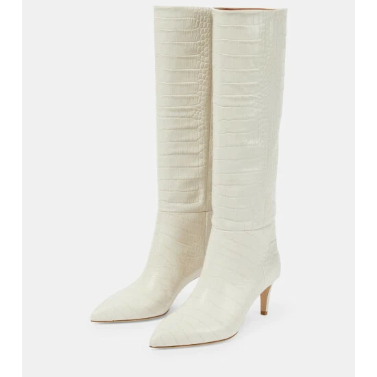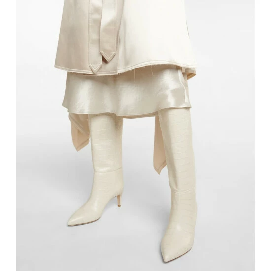 Stand out from the crowd in these croc-effect knee-high boots from Paris Texas. They’re made from leather, and end in sharp pointed toes.