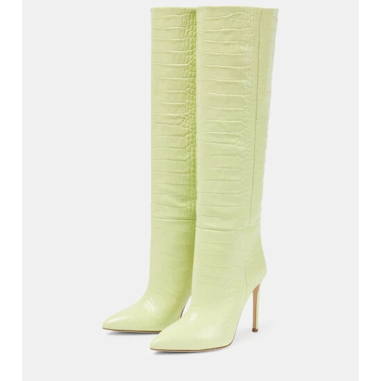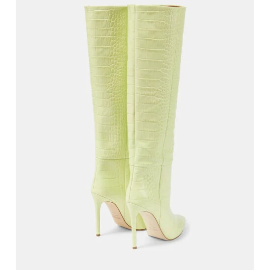 You can’t underestimate the mileage you’ll get out of these boots from Paris Texas, a favorite footwear label among the fashion set. Made from lime green croc-embossed leather, this knee-high pair has pointed toes and is set on stiletto heels.