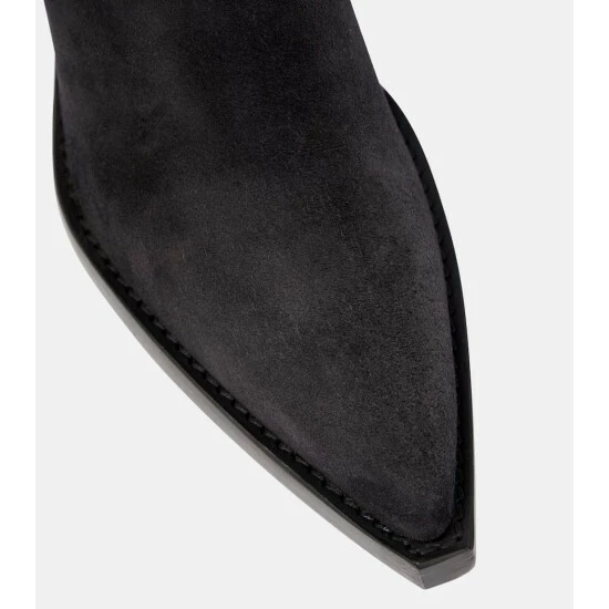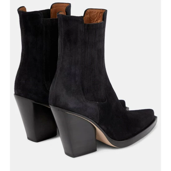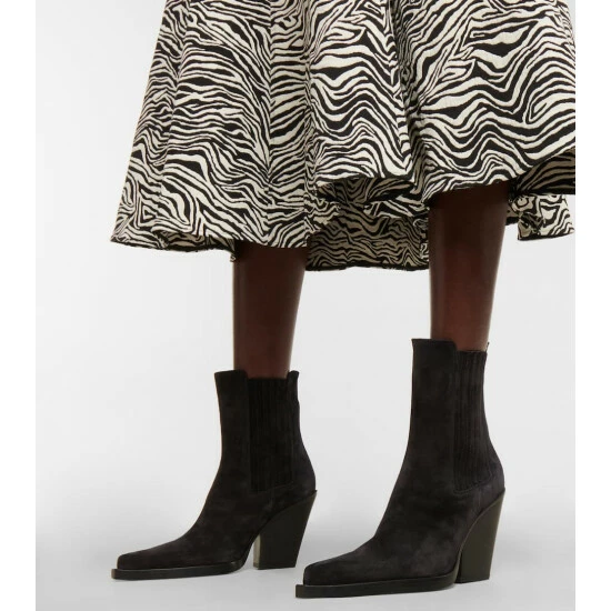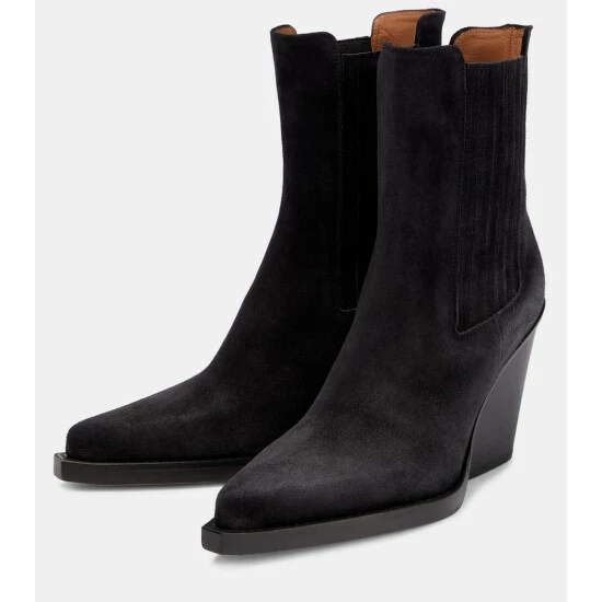 Paris Texas adds a tough edge to the classic Chelsea boots with the Dallas design. Made from velvety suede, the pair has angular, pointed toes, elasticated side gussets, and Cuban heels.