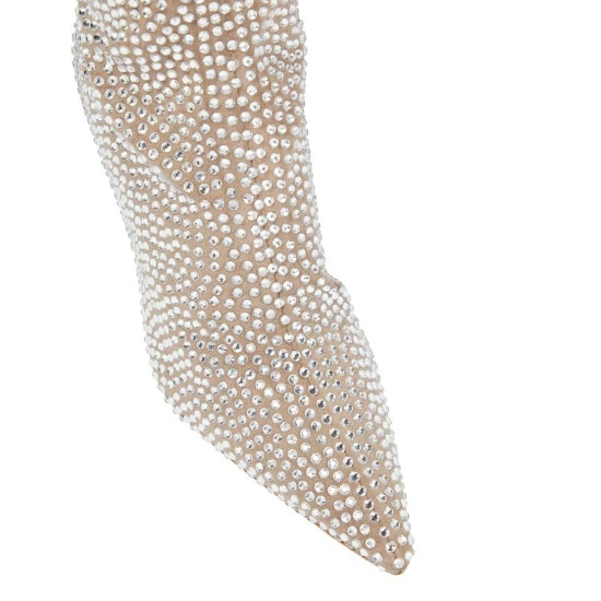 Make an entrance in these over-the-knee boots from Paris Texas. Made from beige suede and encrusted with shimmering crystals, theyβre set atop stiletto heels with piercing point-toes for a striking silhouette.