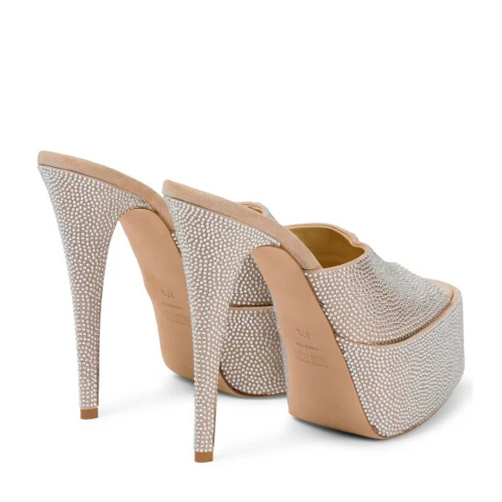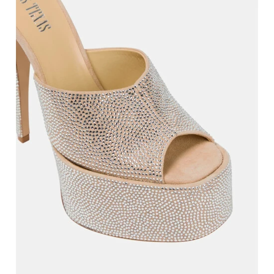 Made from suede and covered in crystals, these sandals from Paris Texas are sure to become your preferred party shoe. They have open toes and towering stiletto heels.