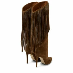 Embrace a fierce spirit with these over-the-knee boots from Paris Texas. They’re made in Italy from supple off-white leather and feature pointed toes, stilettos heels, and fringed collars.