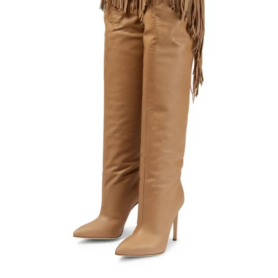 Embrace a fierce spirit with these over-the-knee boots from Paris Texas. They’re made in Italy from supple leather and feature pointed toes, stilettos heels, and fringed trims.