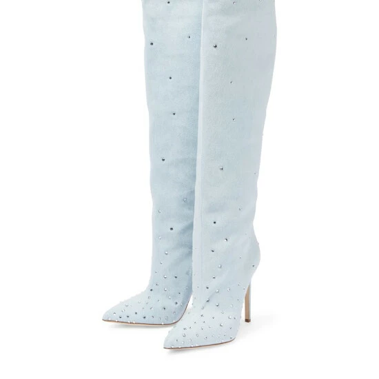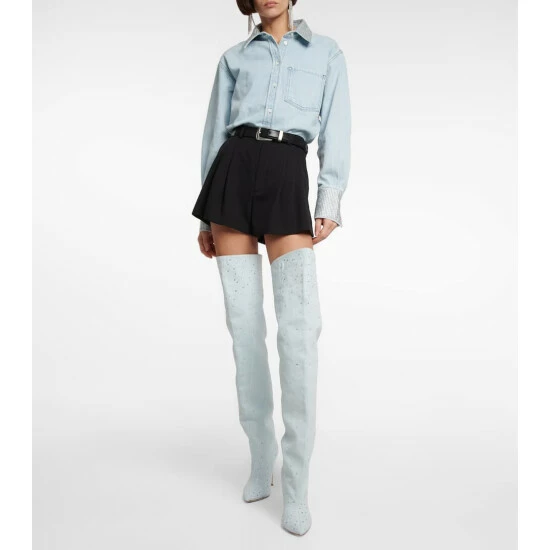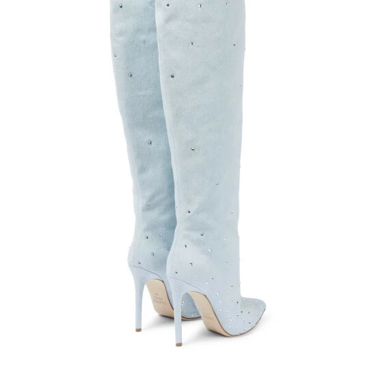 Take your footwear to new heights with the Holly over-the-knee boots from Paris Texas. They’re made in Italy from light-wash denim and finished with scattered glittering crystal embellishments.