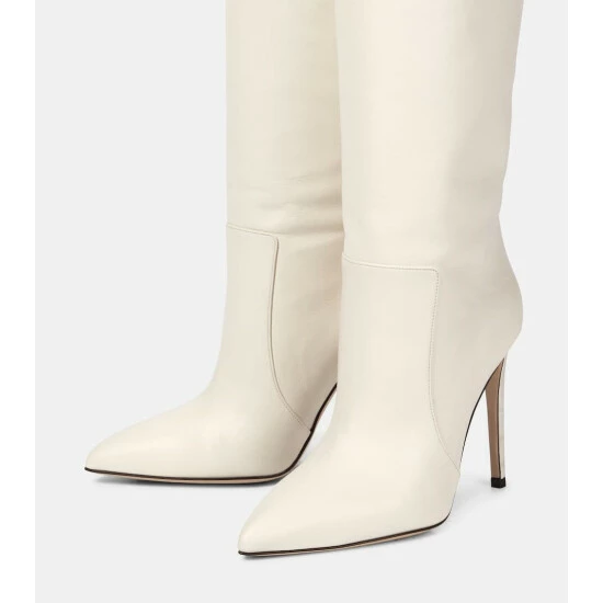 Every wardrobe needs a pair (or two, or three) of white leather boots, and this Paris Texas pair has a slouchy mid-thigh length that will lend a fresh touch to your looks. Pointed toes and sharp stiletto heels make them all the more modern.