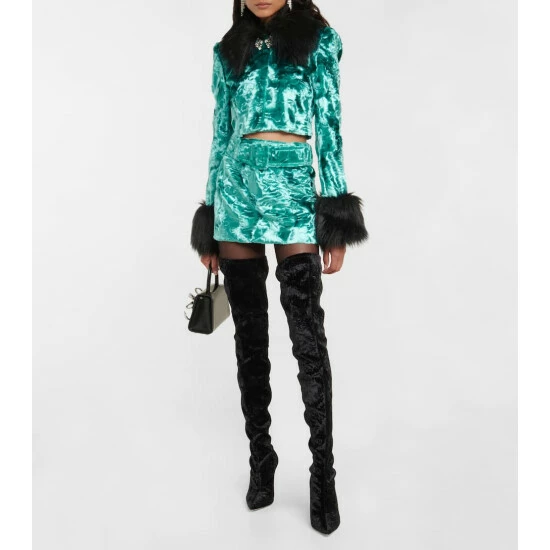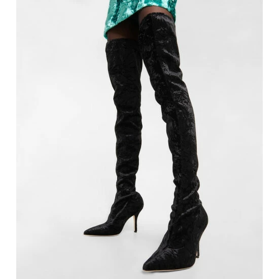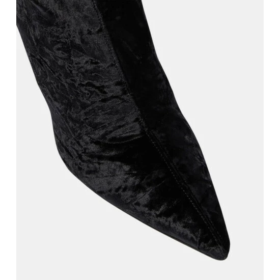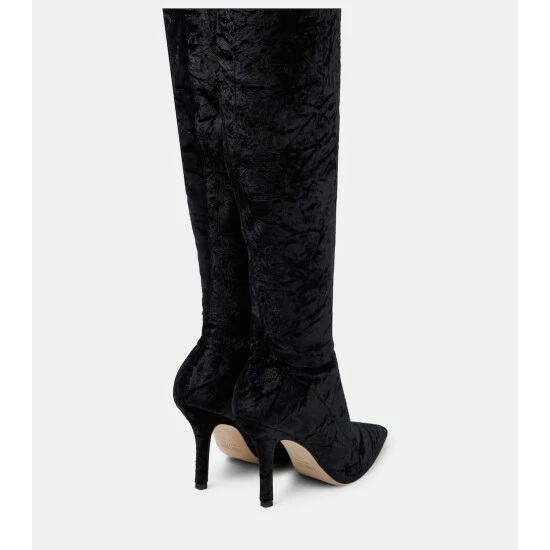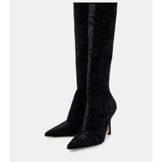 A dramatic over-the-knee design, Paris Texas’ Mama boots are made from velvet and have pointed toes and stiletto heels.