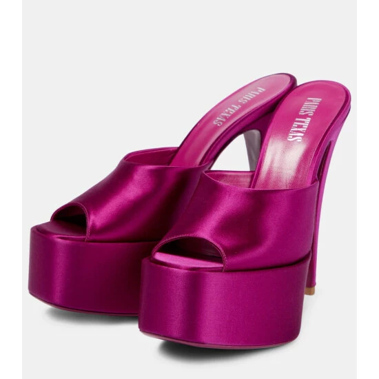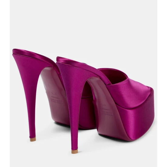 Let your footwear be the focal point of your outfit with the Marina mules from Paris Texas. Made from glossy satin, they have platform soles and soaring 130mm stiletto heels.