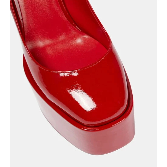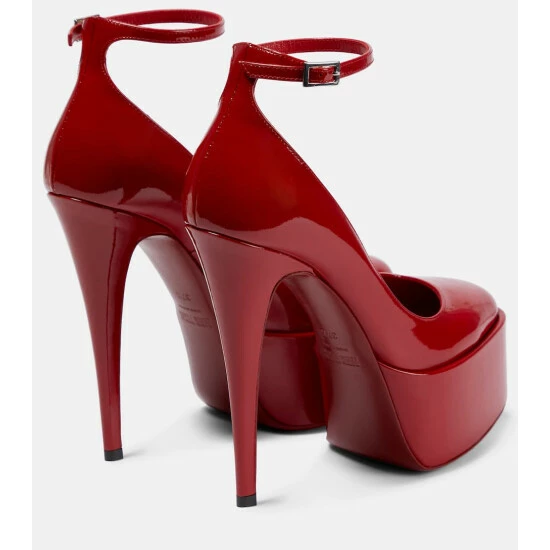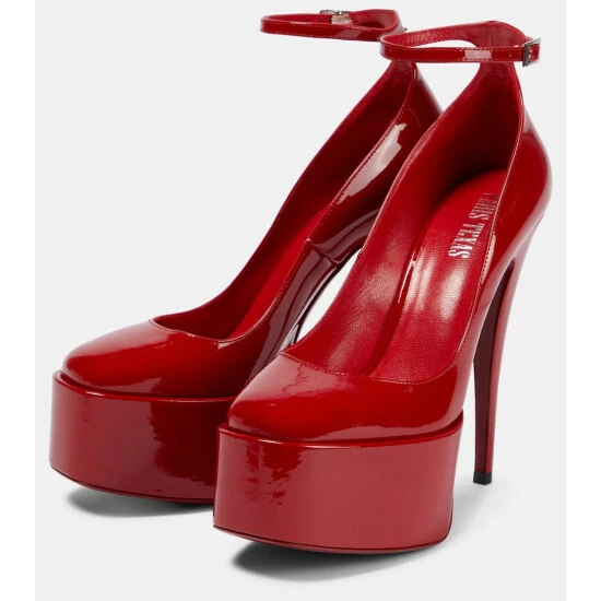 Dress up for a party the Paris Texas way with the Nancy pumps. They’re made from patent leather with dramatic platforms, stabilizing ankle straps, and rounded almond-shaped toes.