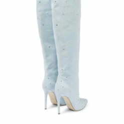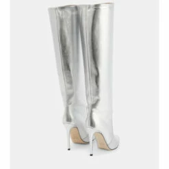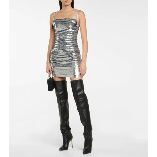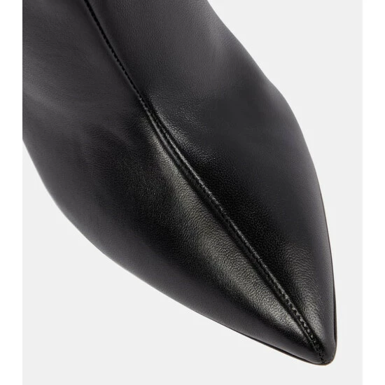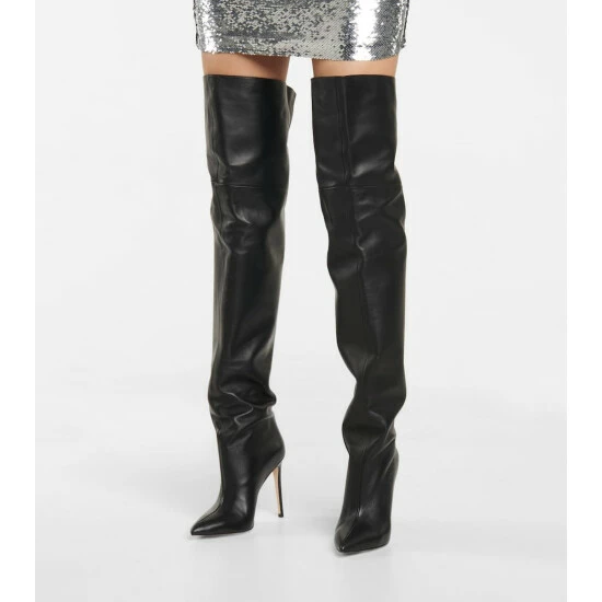 Paris Texas renders its signature over-the-knee boots here in understated black leather. The skin-tight pair has piercing pointed toes, and is set atop sophisticated mock-croc stiletto heels.