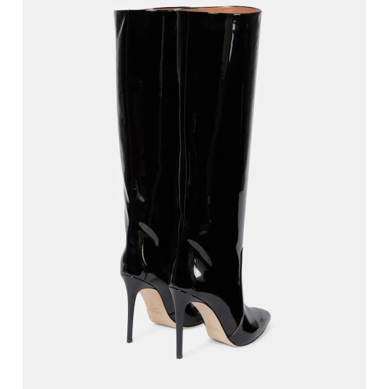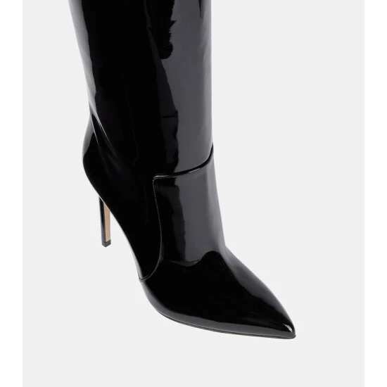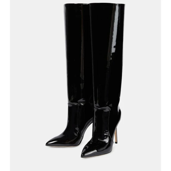 Chic with a little bit of attitude, these glossy black knee-high boots are what Paris Texas is all about. Made in Italy from patent lambskin leather, they have pointed toes and are set on 105mm stiletto heels.