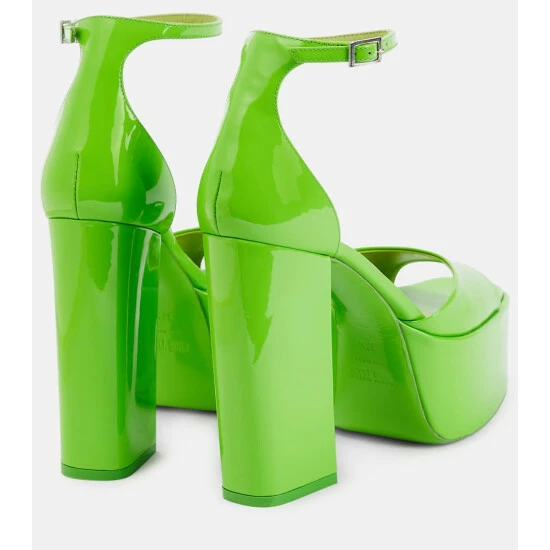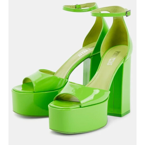 Paris Texas reimagines classic footwear with cinematic drama to create designs like the Tatiana sandals. Made from patent leather, they feature elevated platforms, streamlined vamps, and buckled ankle straps.