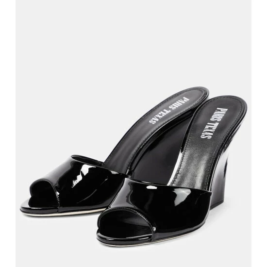 Paris Texas offers an innovative take on the wedge with the Wanda sandals. The artful design is made from glossy patent leather in a versatile black hue.
