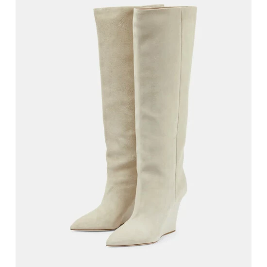 Make footwear the focal point of your ensemble with the Wanda knee-high boots from Paris Texas. They’re made from cream-white suede and set atop contemporary 95mm wedge soles.