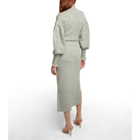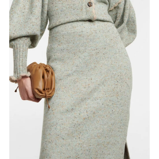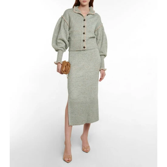 The Kaiya midi skirt from Ulla Johnson is made from the brandβs flecked knit fabrication. It sits at a high-rise and hugs the figure before falling to a lightly flared hem created by side slits.
