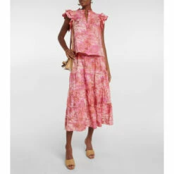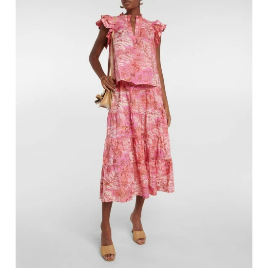 The Lei top from Ulla Johnson features signature flutter sleeves for an ultra-feminine take on shirting. It’s made from printed cotton poplin with a ruffled collar. Wear yours with the matching Makana skirt.