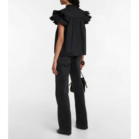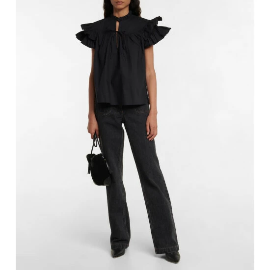 Made from cotton poplin, Ulla Johnson’s Letty top has ruffled sleeves and a self-tie neckline.
