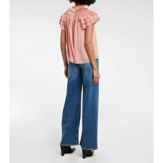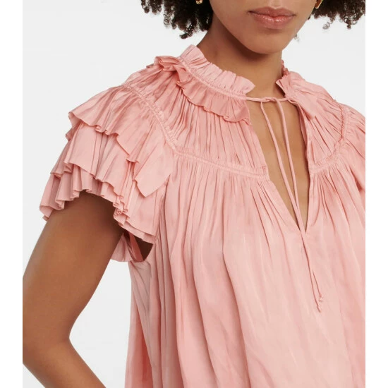 Ulla Johnson’s Liv top is a polished option for both day and evening. Made from the brand’s lustrous plissΓ© satin, it’s shaped to a loose silhouette with flutter sleeves and romantic ruffled trims.