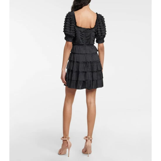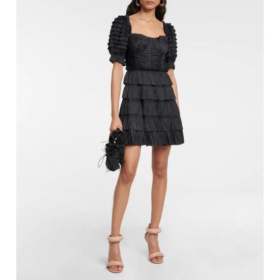 Made from plissΓ© satin, the Lucette dress from Ulla Johnson has a corset-like bodice and puffed sleeves.