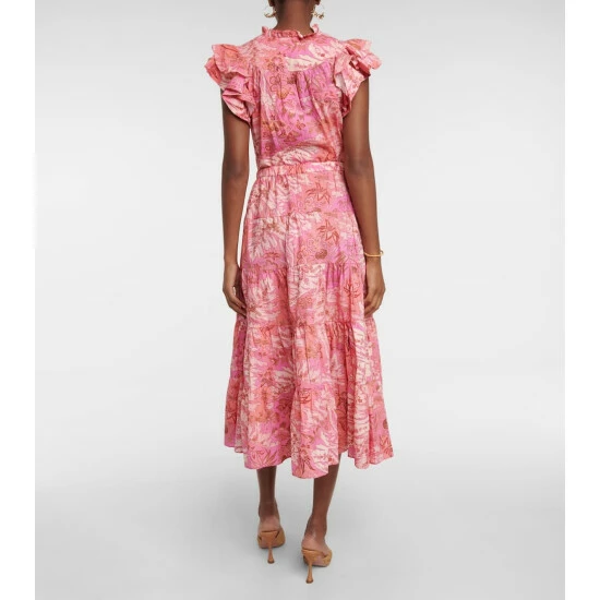 The Makana midi skirt from Ulla Johnson will go far in your warm-weather wardrobe. It’s made from printed cotton poplin with a tiered silhouette and a drawstring waist for a cinched-in effect.