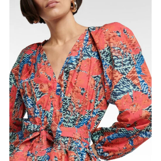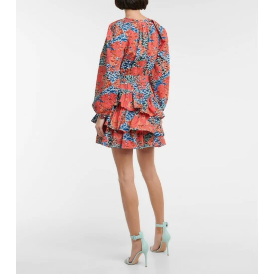 Cut from airy cotton poplin, the Miranda minidress from Ulla Johnson features a ruffle skirt, billowy sleeves, and a tonal self-tie belt. The design is finished with an all-over abstract print.