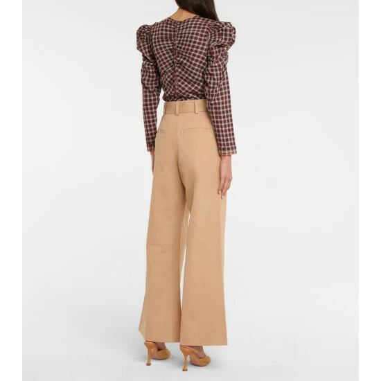 Ulla Johnson’s Nico pants have long, loose-cut legs with doubled pleats that create extra volume. They’re made from cotton and have a high-rise, belted waist.