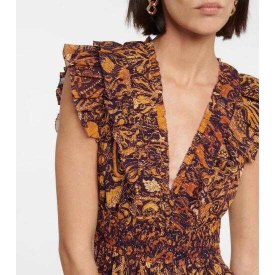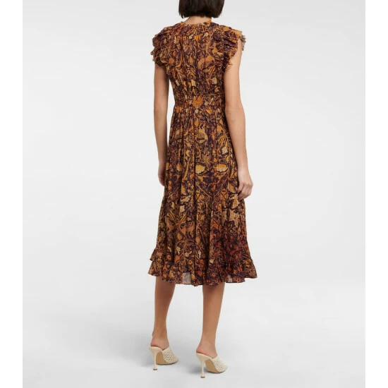 Made from crinkled chiffon that’s enhanced with metallic threads, Ulla Johnson’s Samara midi dress is printed with a playful botanical print and features an elasticated waist, flutter sleeves, and ruched detailing at the neckline.